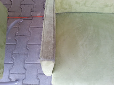 Zdjęcia poniżej przedstawiają czyszczenie alcantary, które klienci określają często jako renowację.